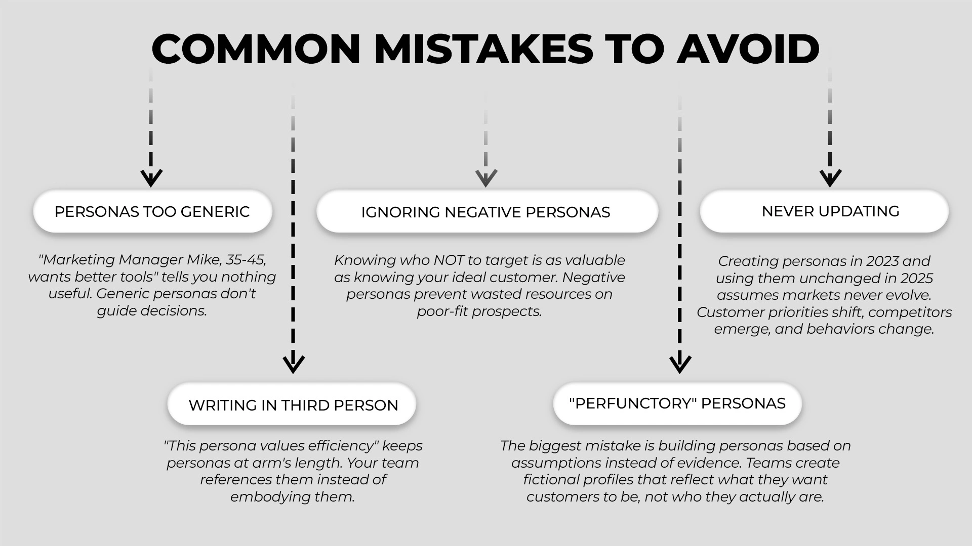 Even well-intentioned persona projects fail when teams make these common mistakes. Avoid them to ensure your personas actually drive results.