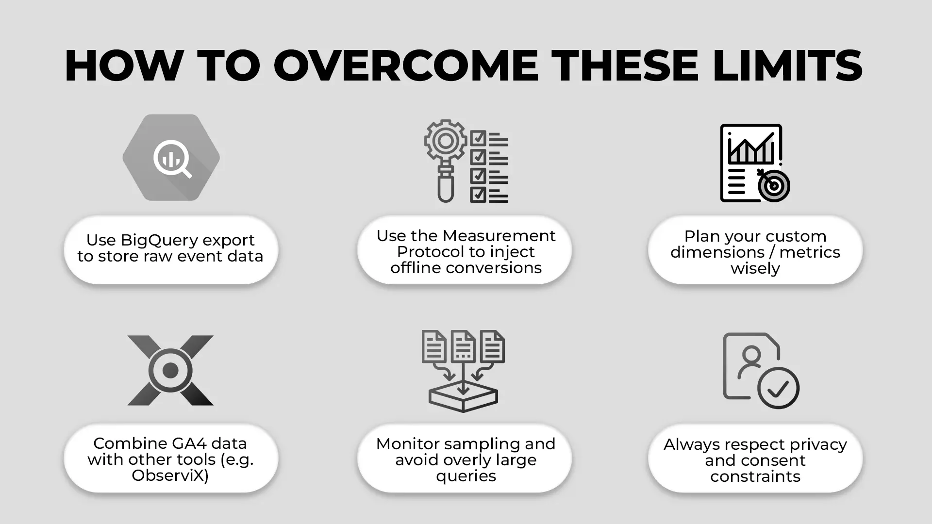 - Combine GA4 data with other tools (e.g. ObserviX) to fill attribution, revenue, and journey gaps.
